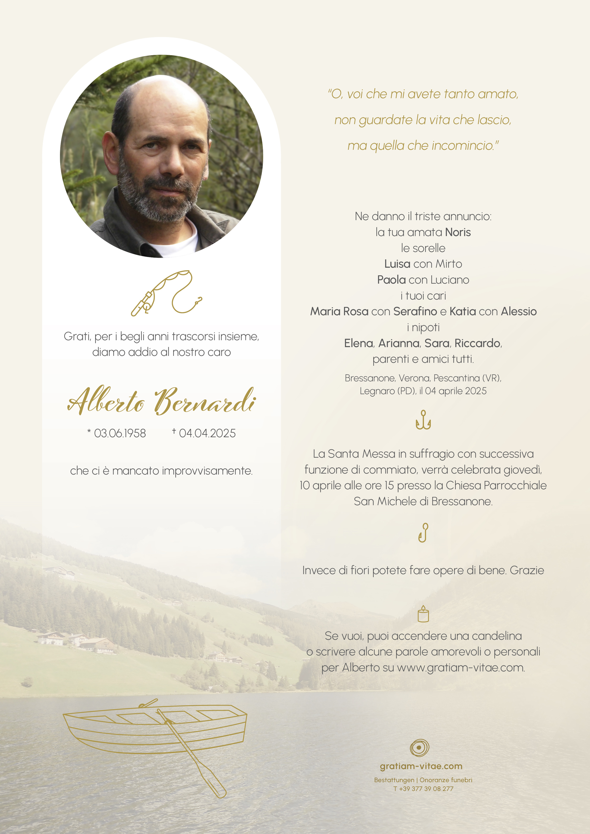 Ciao Alberto! fai buon viaggio e proteggi i tuoi Cari.