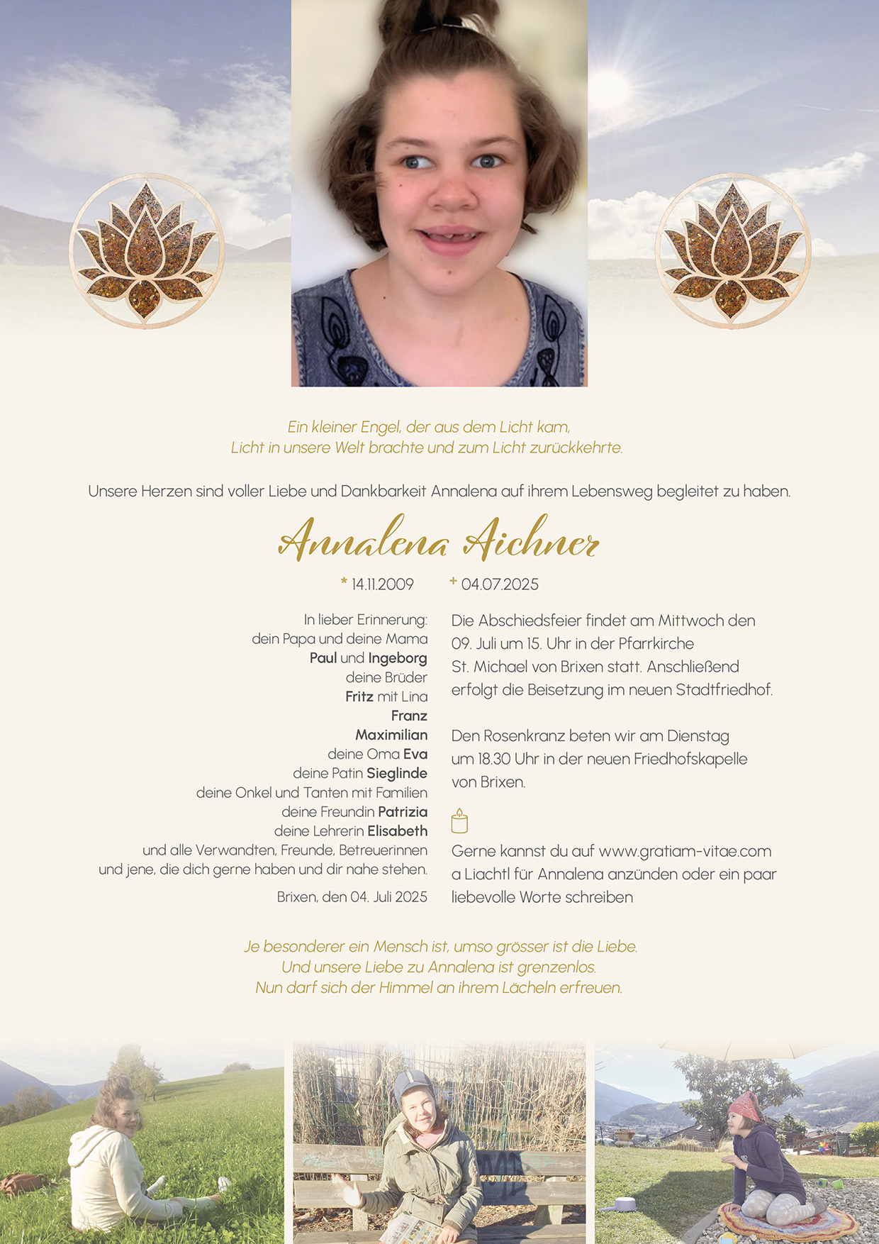 Mögen Engel dich begleiten liebe Annalena. Unser herzliches Beleid. 🤍