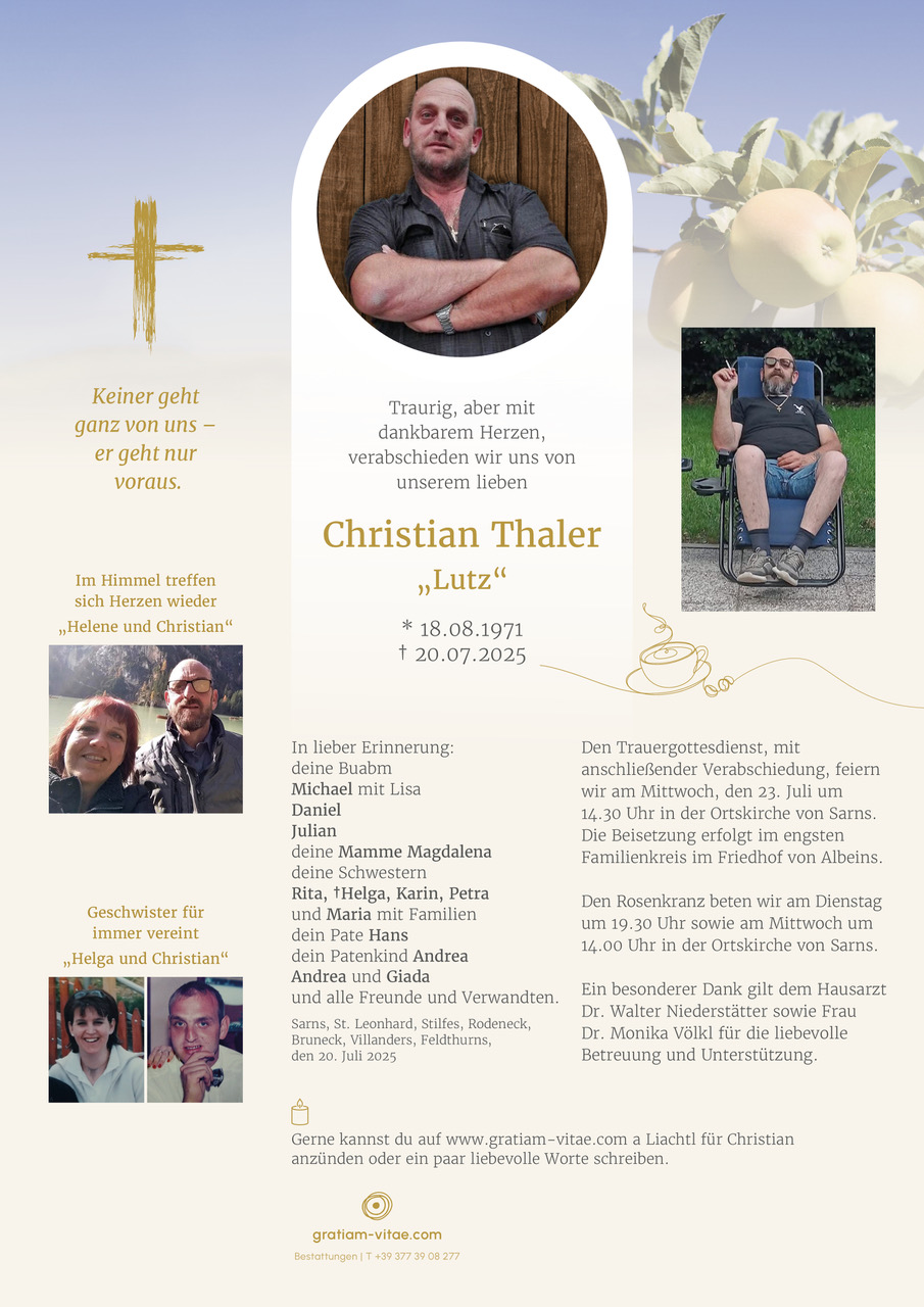 Christian du worsch a Herzens guter Mensch schick viel Liebe u Kraft an deine Familie damit sie nicht verzweifeln