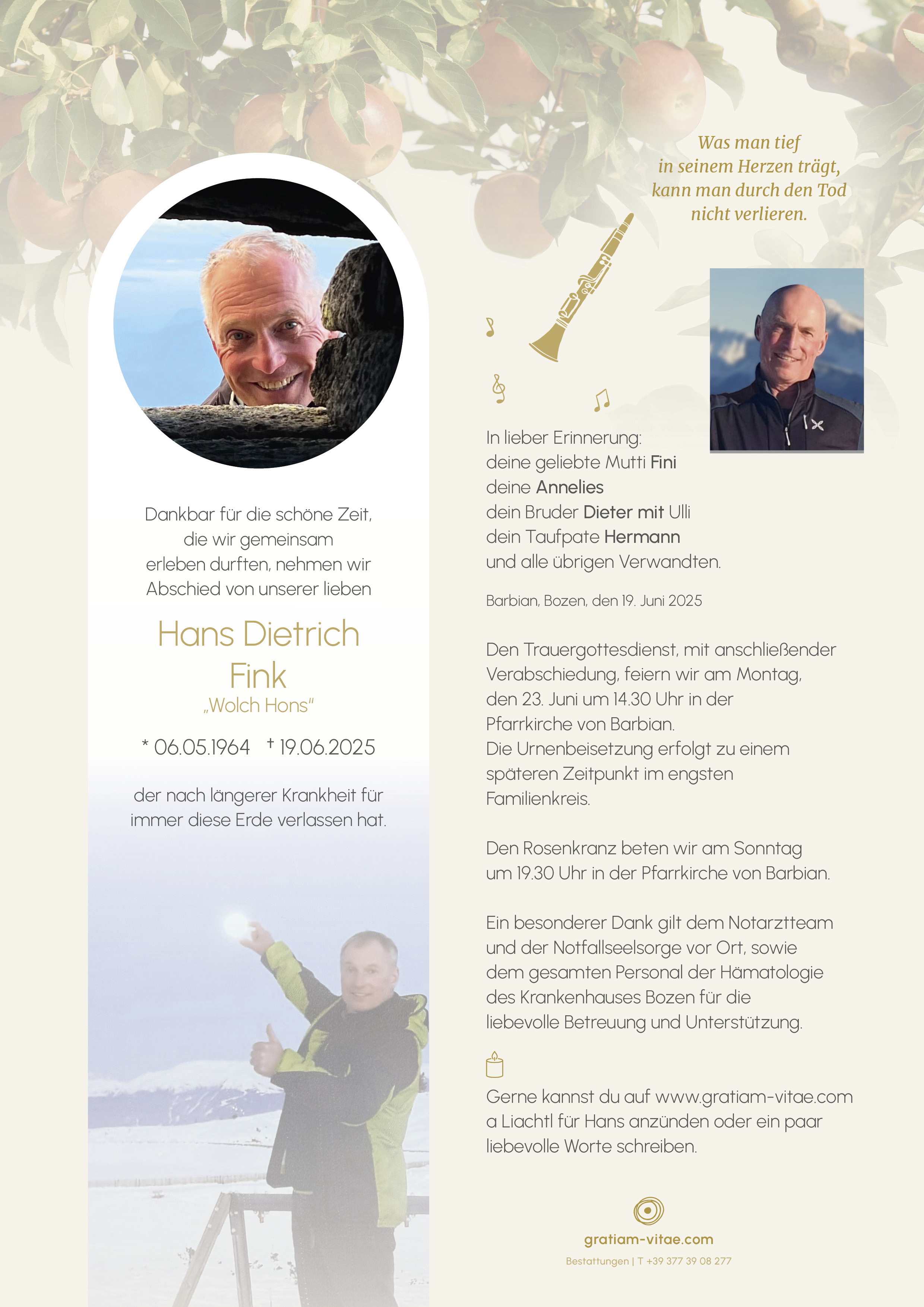 Lieber Hons! Ruhe in Frieden und danke für danke für die schöne Zeit.