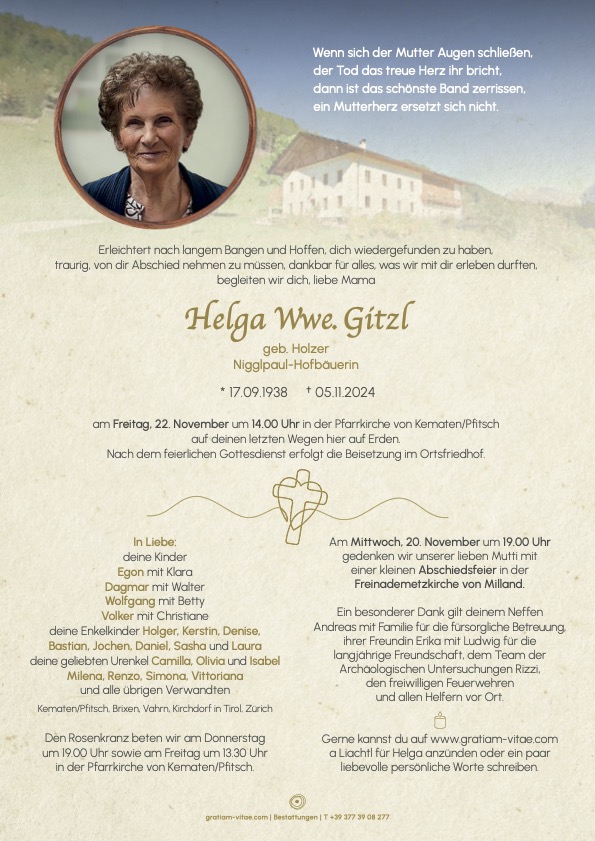 Helga Wwe. Gitzl geb. Holzer