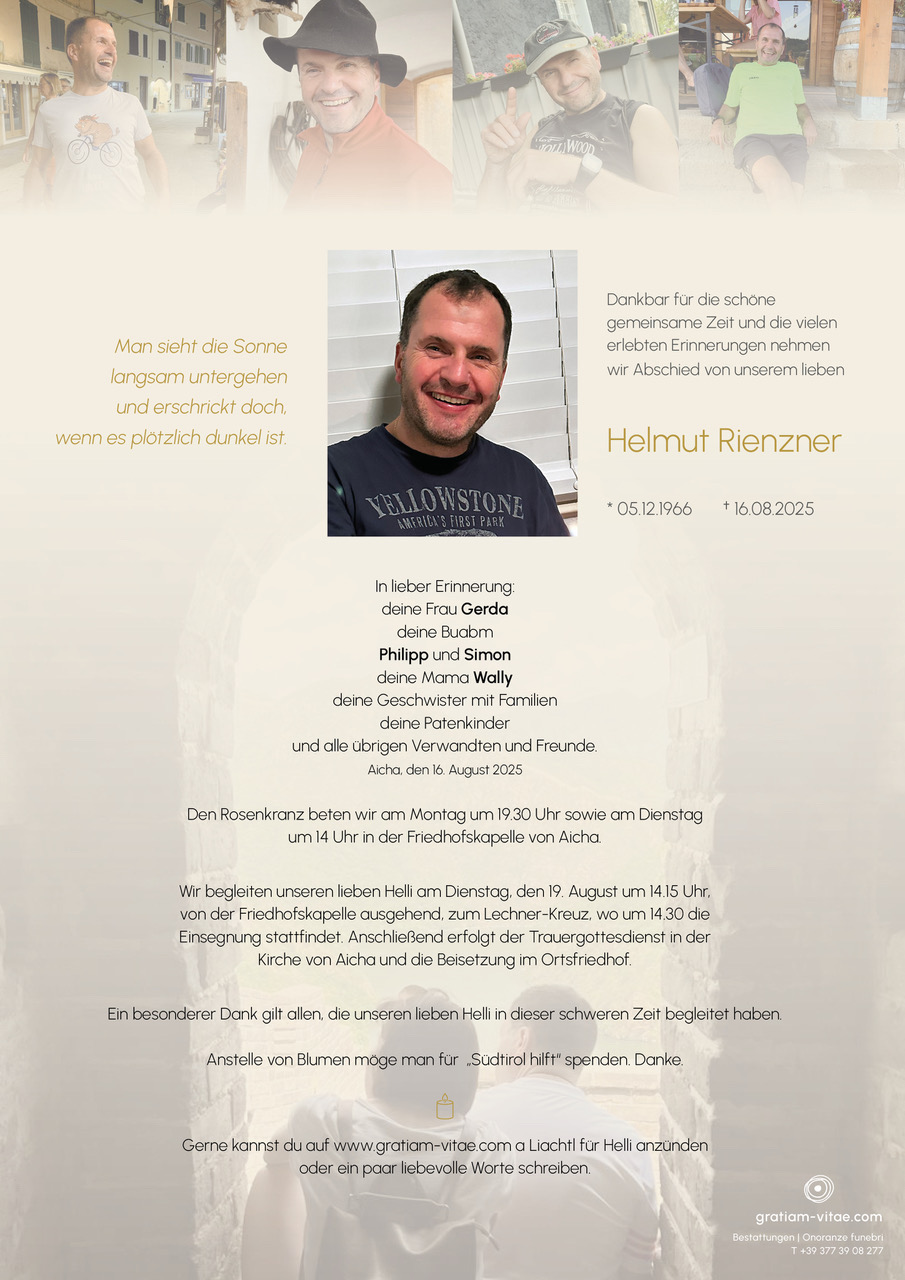 Unser herzliches Beileid den Angehörigen, wir wünschen euch viel Kraft und Zuversicht 🌄