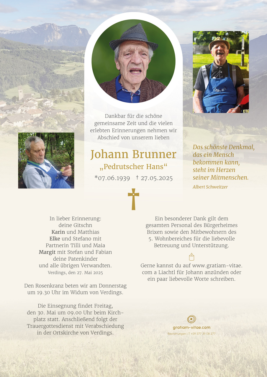 Liebe Geschwister, mein aufrichtiges Beileid zum Tod von Hans. Gerne denke ich an die Zeit zurück, die wir im Urlaub mit ihm verbrachten. Mama und wir Geschwister konnten ihn letztes Jahr zum Glück noch einmal sehen. Ich wünsche euch alles Gute und viel Kraft in der schwierigen Zeit. Herzliche Grüße