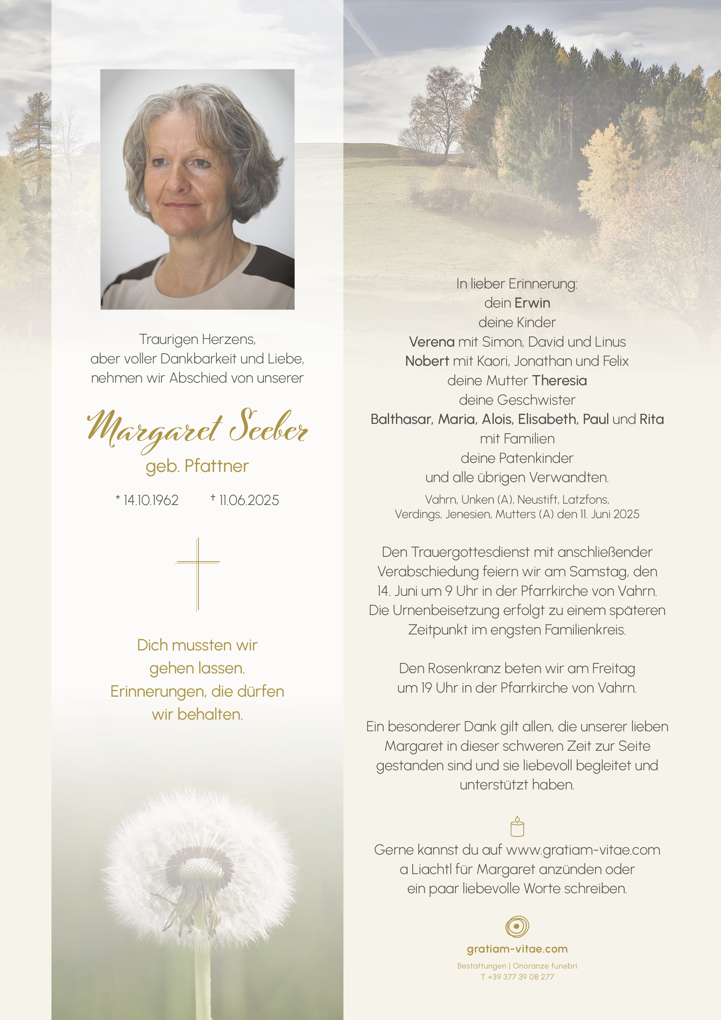 Liebe Verena, in tiefer Verbundenheit mit dir und deiner Familie, deine Arbeitskollegin Marion