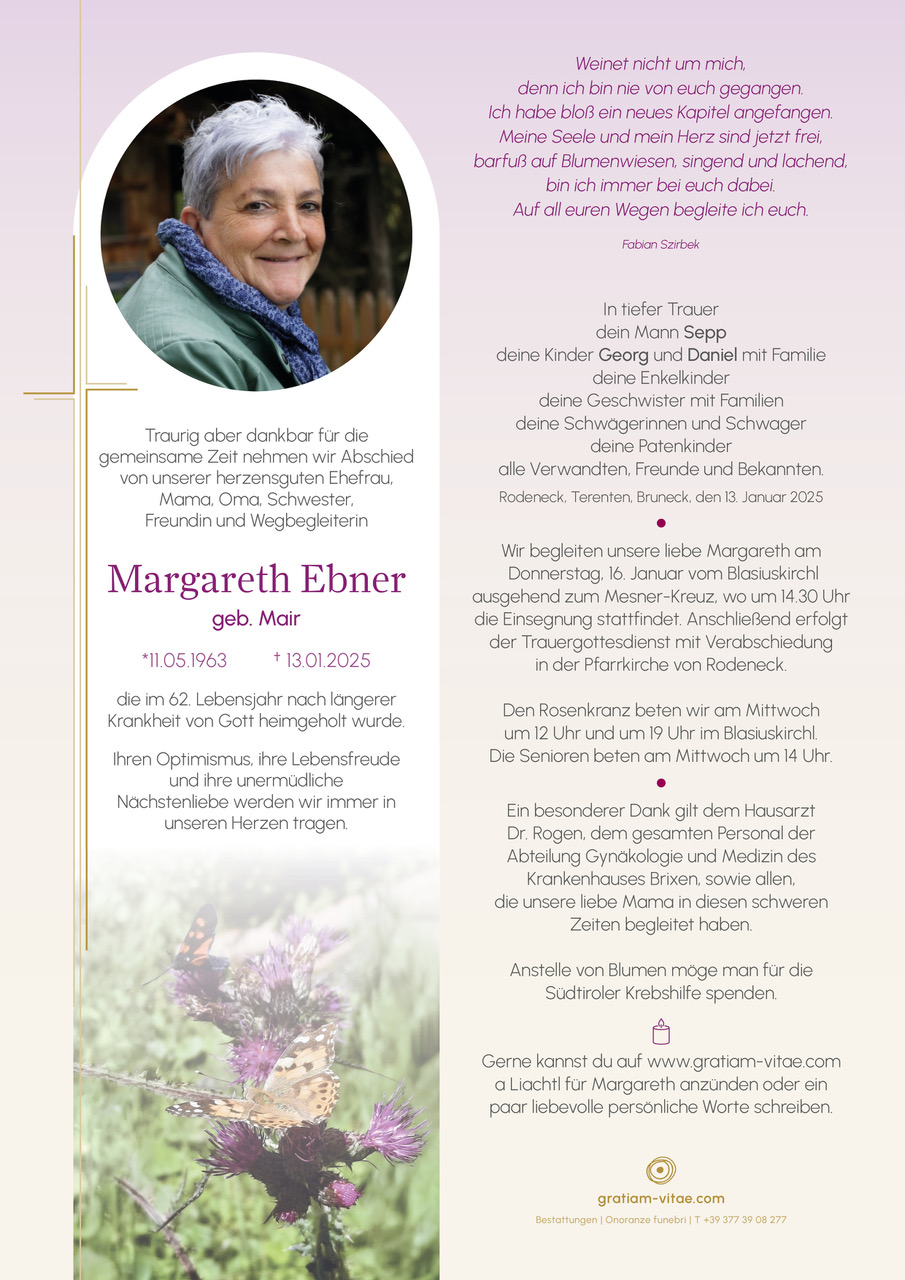 Olls guite liebe margareth zin geburtstog im himml. Du fahlsch ins