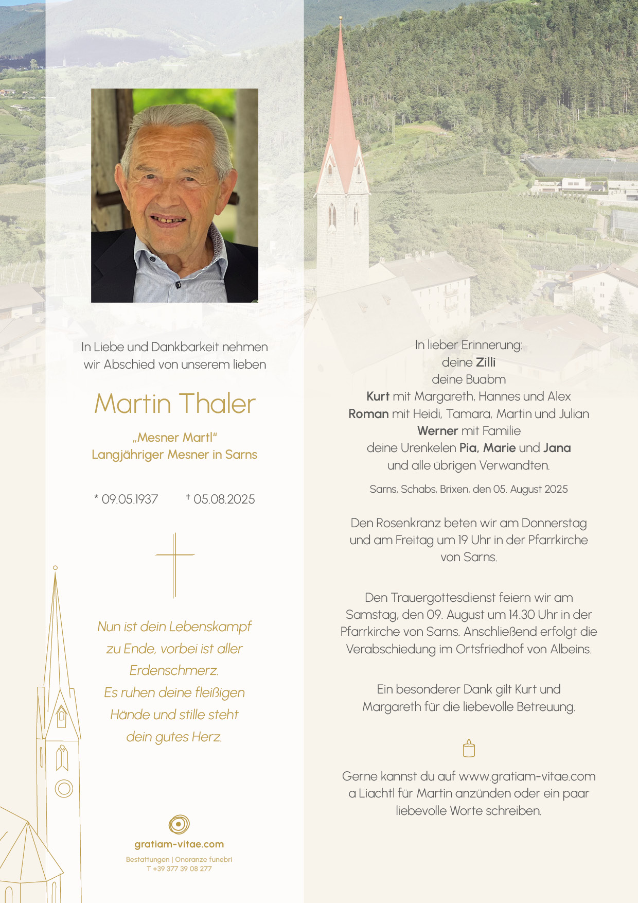 Ruhe in Frieden Mesner Martl, herzliches Beileid den Anghörigen.