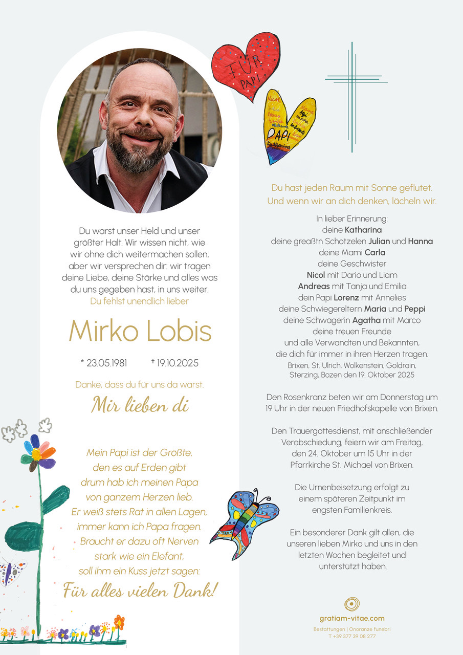 Aufrichtiges Beileid der Trauerfamilie! Mögen Kraft, Zuversicht und viele einfühlsame Menschen euch in dieser schweren Zeit begleiten. Mirkos freundliche und immer gut gelaunte Art werden uns in Erinnerung bleiben...