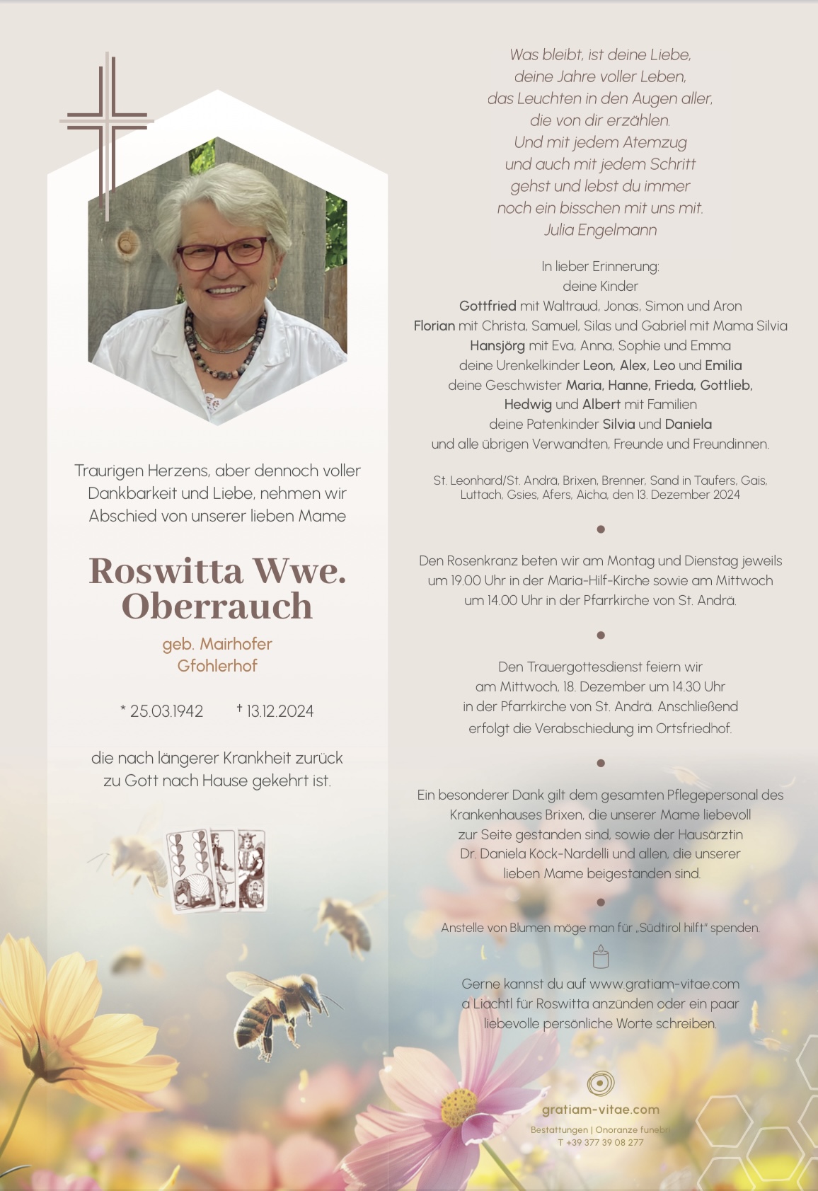 Roswitta Wwe. Oberrauch geb. Mairhofer