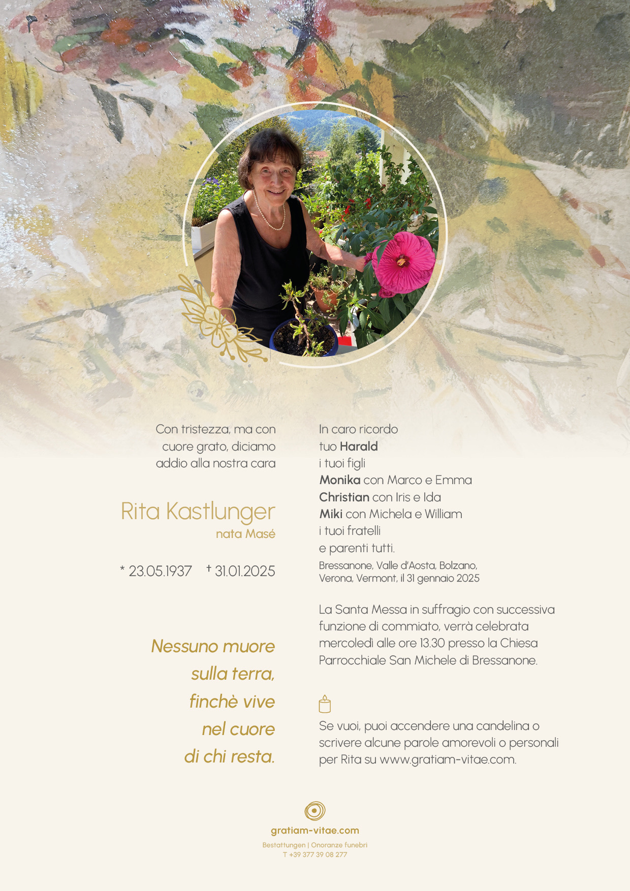 Una suocera particolarmente rara, accogliente, gentile e sempre con un buona parola; il cuore pulsante della grande famiglia, mi mancherai tantissimo. Con grande affetto.