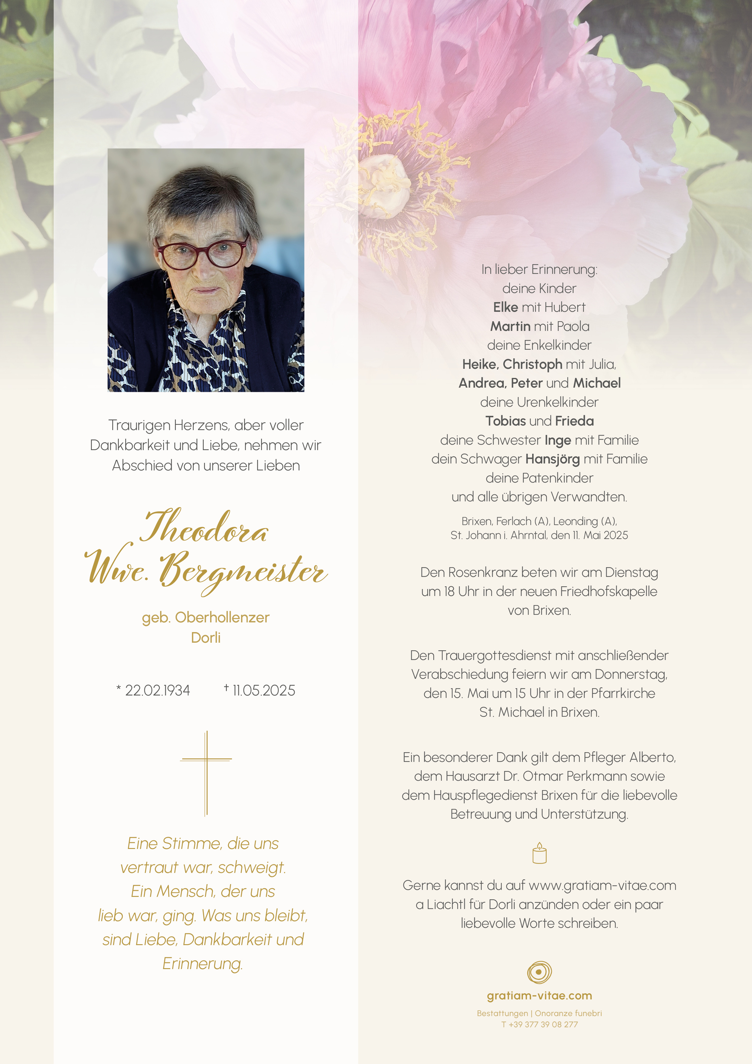 Ruhe in Frieden liebe Dorli! Herzliches Beileid der Trauerfamilie