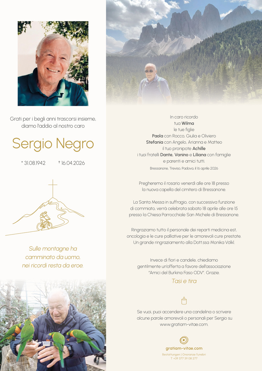 Un ultimo saluto caro Sergio, e sincere condoglianze alla famiglia